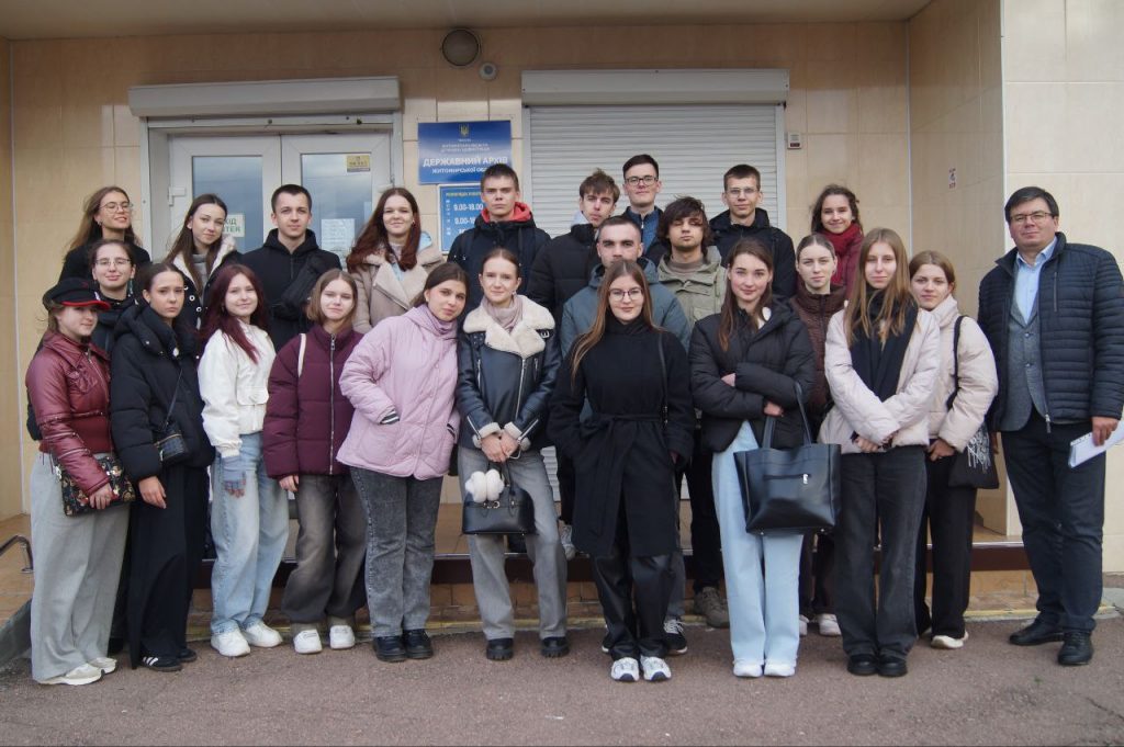 31 жовтня 2025 року студенти факультету національної безпеки, права та міжнародних відносин Державного університету «Житомирська політехніка» разом з доктором історичних наук та професором кафедри міжнародних відносин і політичного менеджменту Андрієм Шевчуком відвідали екскурсію в Державному архіві Житомирської області.