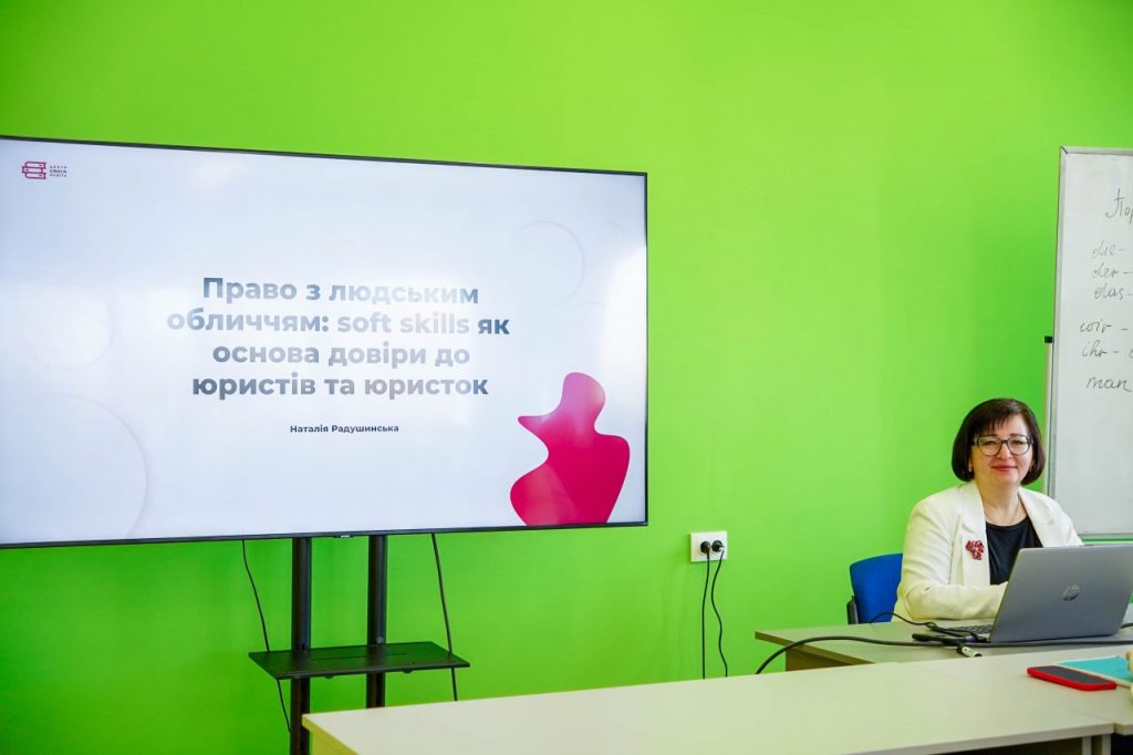 Лекторка наголосила, що вже з першого курсу важливо формувати не лише правниче мислення, а й культуру професійної комунікації, етичну відповідальність, здатність до критичного аналізу, емпатію та вміння працювати з клієнтом. У контексті реалізації освітньо-професійної програми «Право» особливий акцент було зроблено на розвитку soft skills як складової інтегральної компетентності майбутнього правника.
