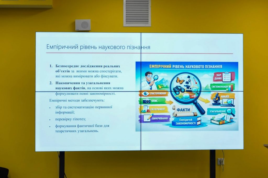 Перший воркшоп весняного семестру був присвячений темі «Емпіричні методи дослідження». Під час заходу учасники ознайомилися з особливостями використання емпіричних методів у наукових дослідженнях, дізналися про можливості застосування опитувань, інтерв’ю, спостереження та аналізу даних у підготовці наукових робіт.