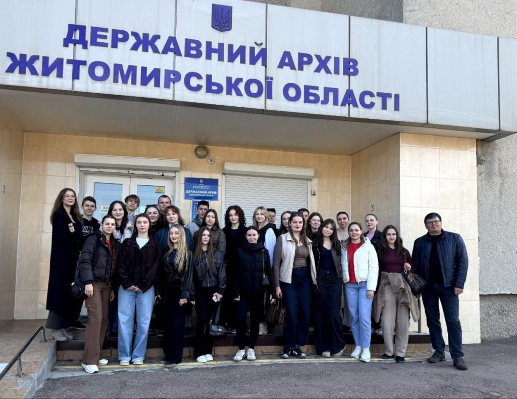 Продовжується співпраця Державного університету «Житомирська політехніка» з Державним архівом Житомирської області. У рамках вивчення освітньої компоненти «Історія та культура України» 27 березня 2026 р. студенти факультету національної безпеки, права та міжнародних відносин Державного університету «Житомирська політехніка» разом з професором кафедри міжнародних відносин і політичного менеджменту Андрієм Шевчуком ознайомилися з роботою архівної установи.